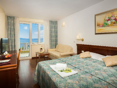 Superior dopplezimmer (2) mit Balkon und blick auf den Strand, den örtlichen Yachthafen und die Inseln Brač u. Hvar - ideal für 2 Personen.